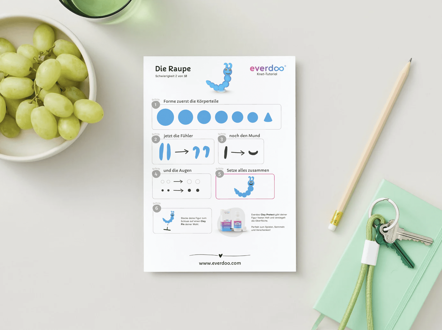 Für extra Halt und einer sauberen Oberfläche, versiegelst du deine Figur mit Everdoo Clay Protect – perfekt zum Spielen, Sammeln und Verschenken!