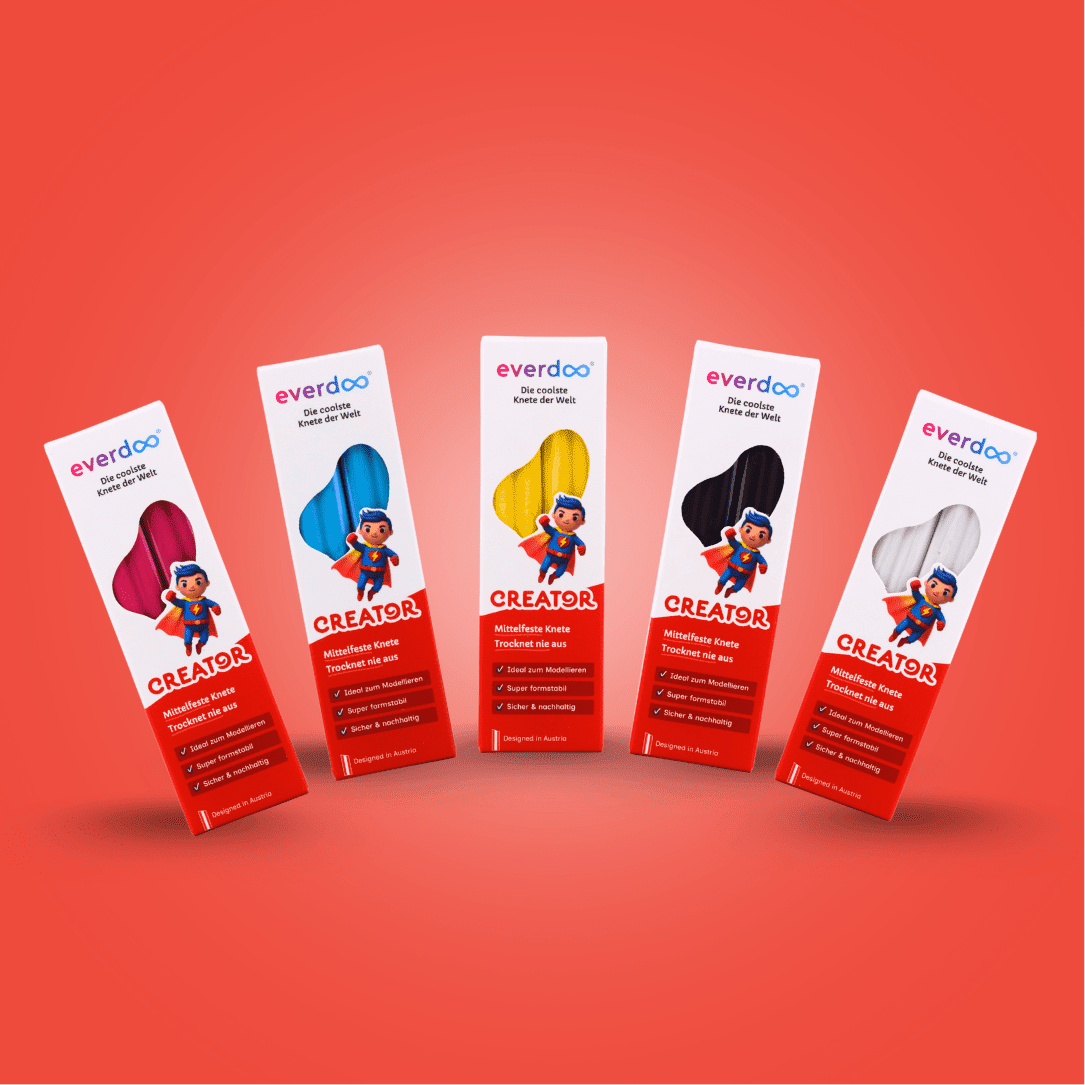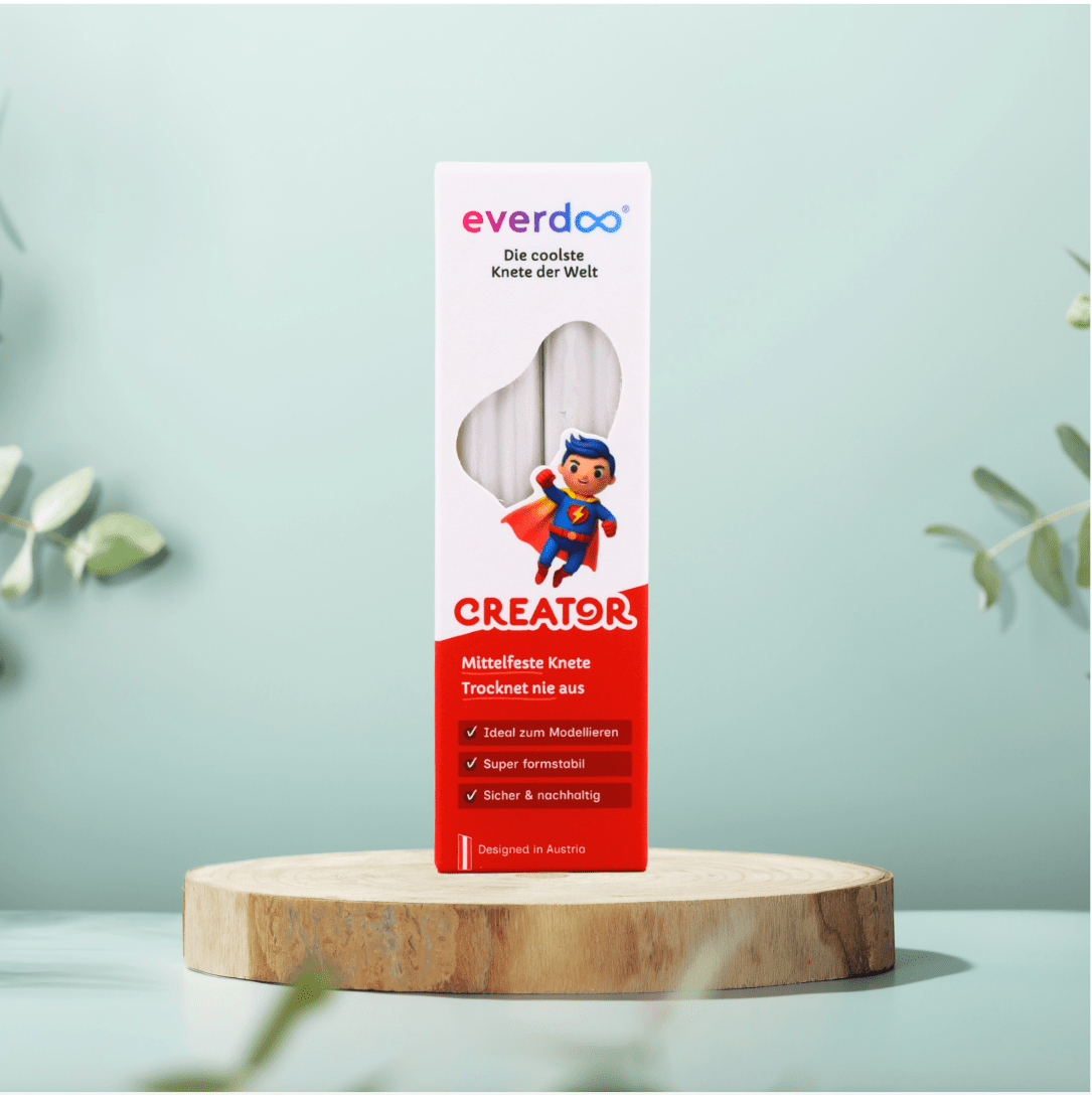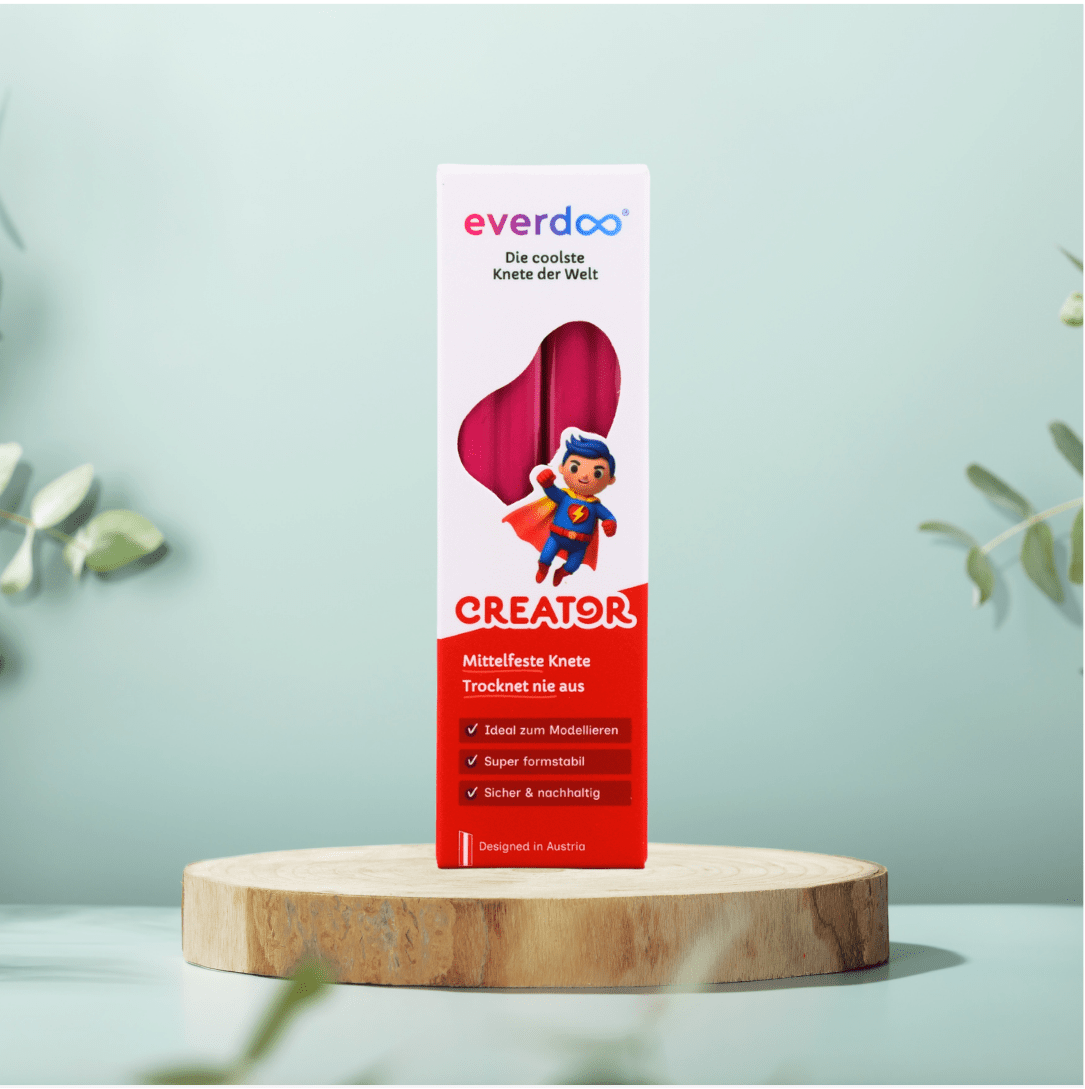 Die hochwertige Everdoo CREATOR Knete besitzt eine festere Konsistenz und bietet dadurch mehr Kontrolle beim Formen. Sie ist perfekt geeignet für Kinder ab 3 Jahren, kreative Köpfe und alle, die detailreiche Figuren, klare Konturen und stabile Strukturen erschaffen möchten. Natürlich bleibt sie dauerhaft formbar und trocknet niemals aus.