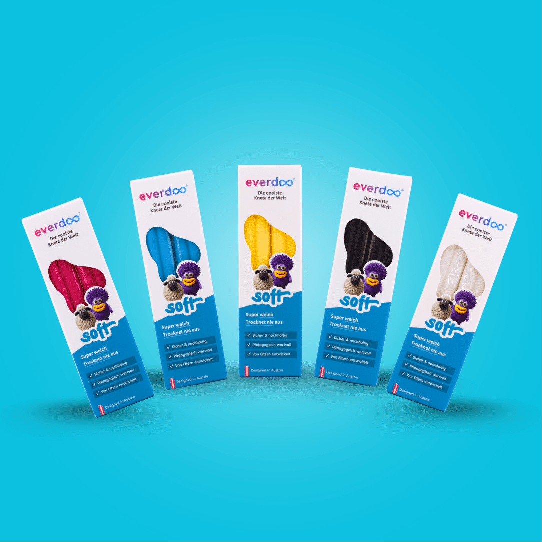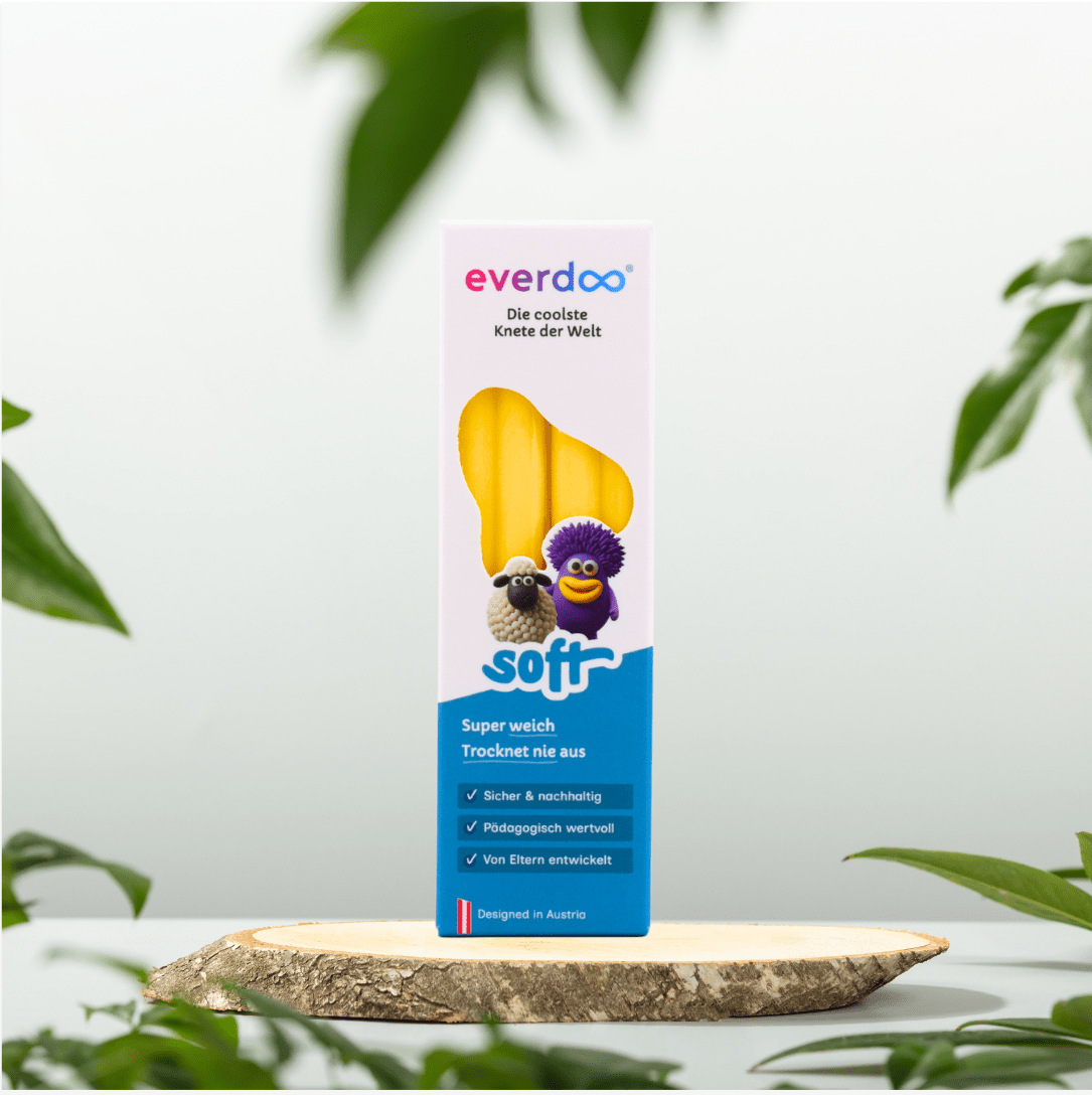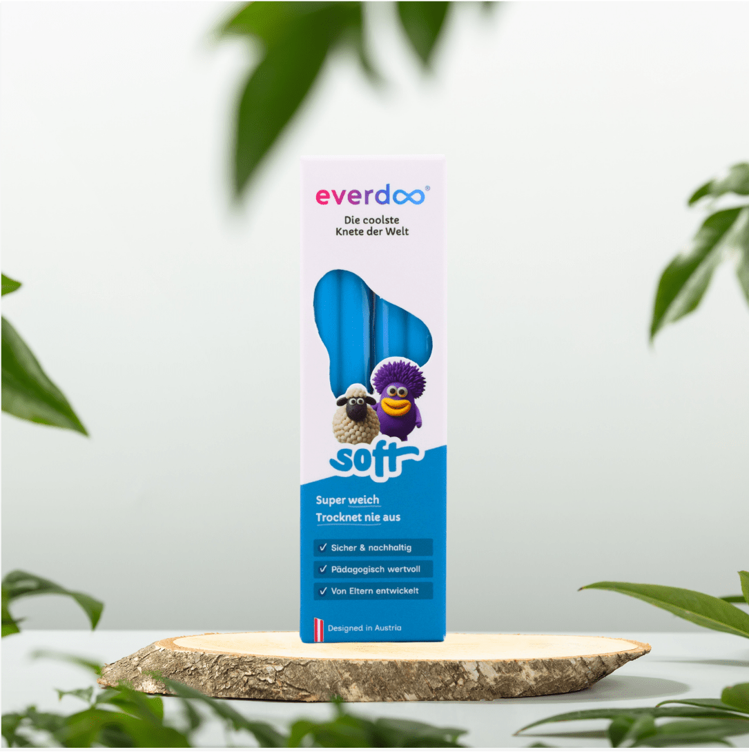 Die weiche, hochwertige Knete ist ideal für Kinder ab 1 Jahr. Sie bleibt dauerhaft weich, trocknet nie aus und lässt sich besonders leicht formen – perfekt für kleine Hände und kreative Erlebnisse. Dabei ist Everdoo SOFT hautfreundlich, sicher und frei von Gluten, Laktose und Erdnüssen.