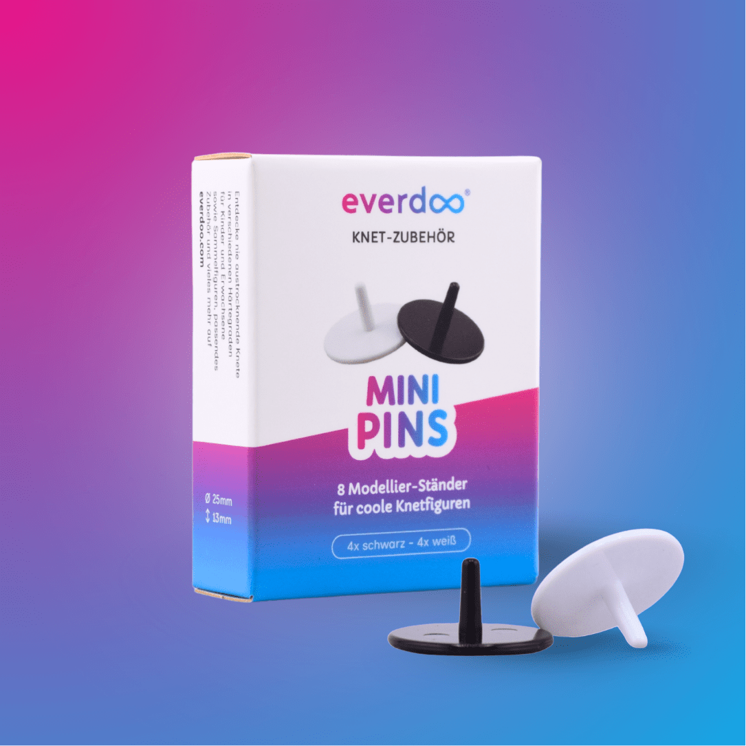 Mit den Everdoo Mini Tools können Figuren spielerisch geformt, geschnitten und gestaltet werden. Die Mini Pins geben fertigen Knetfiguren sicheren Halt und machen sie stabil – ideal zum Aufstellen, Spielen oder Sammeln.