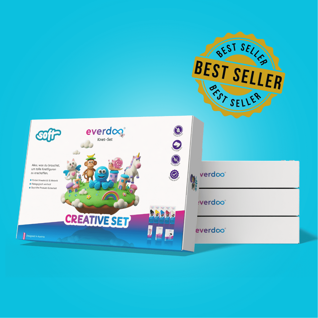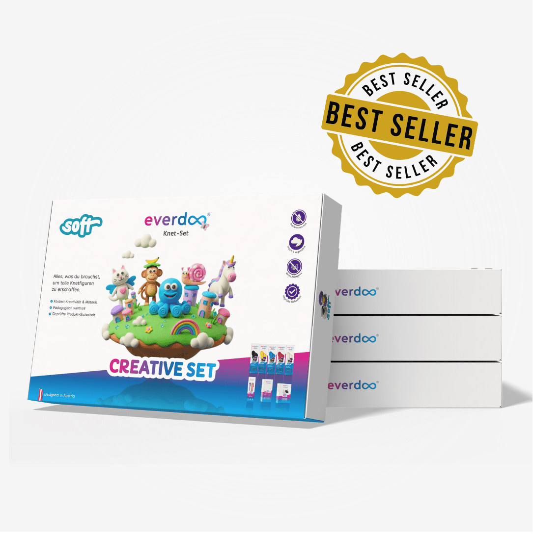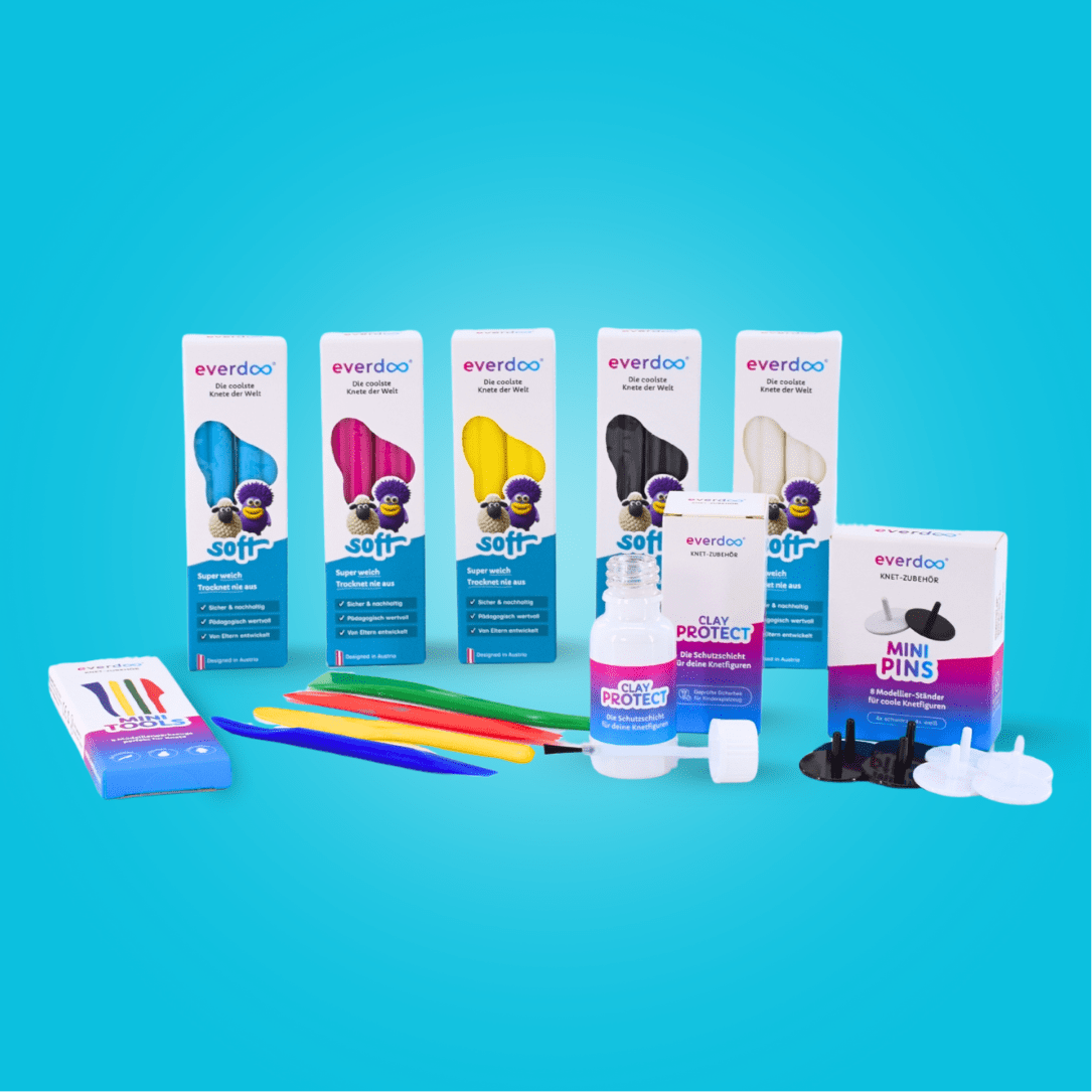 Das Everdoo SOFT – Creative Set ist genau das richtige Set für alle, die mit Everdoo echte Figuren erschaffen und dauerhaft festhalten möchten. Es verbindet die extra weiche Everdoo Knete mit dem passenden Zubehör, um Figuren nicht nur zu modellieren, sondern sie auch haltbar zu machen – perfekt zum Spielen, Sammeln und Verschenken.